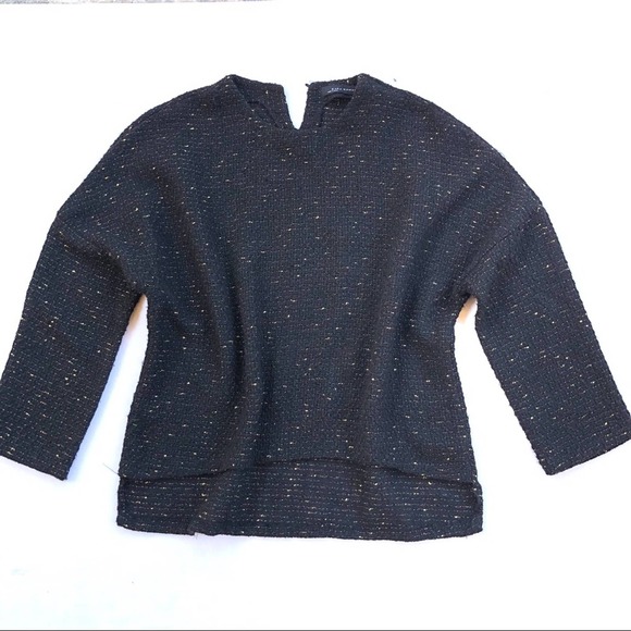 Zara Black Tweed Knit Top W/ Metallic Gold Thread