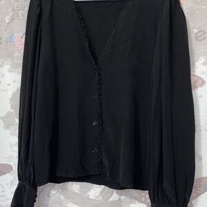 Zara Black v-neck button down blouse. Size Large Excellent pre-owned condition