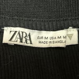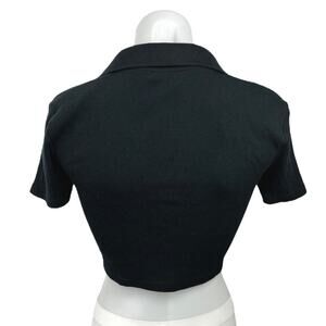 Zara Black V-Neck Collar Ribbed Knit Short Sleeve Polo Shirt Crop Top Size M
