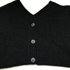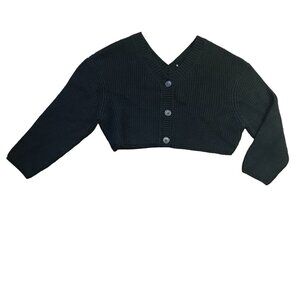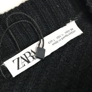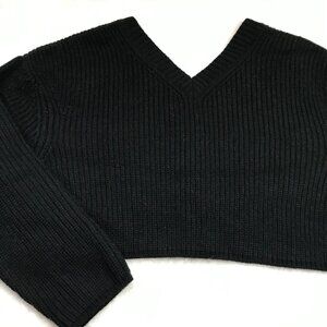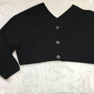 Zara Black V-Neck Cropped Cardigan Sweater Women's Large Ribbed Wool Blend NEW