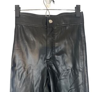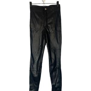 Zara Black Vegan Leather Skinny Zippered Ankle Classic Pants Women Sz XS