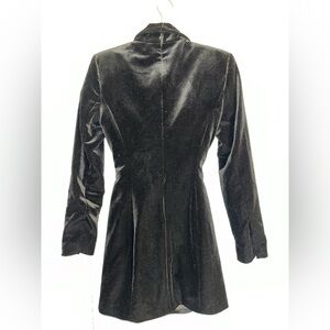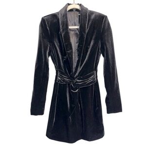 Zara Black Velvet Blazer Dress Structured Mini Belted Long Sleeve Size XS Tuxedo