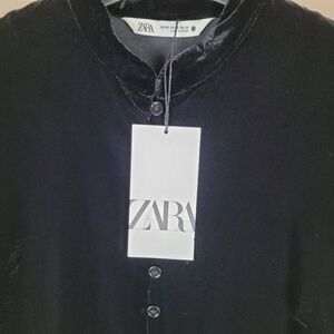 Zara Black Velvet Embroidery Mini Dress Long Sleeve Size XS NWT