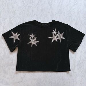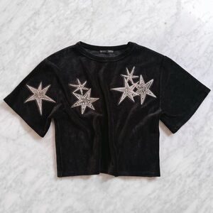 Zara Black Velvet Star Embellished Crop Top Women’s Size Small