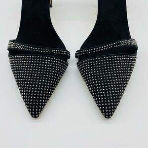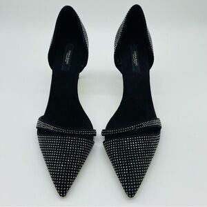 Zara Black Velvet Studded Cutout Heels, Sz EU 39