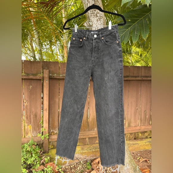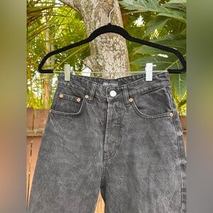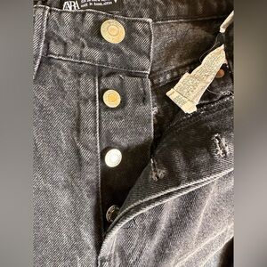 Zara Black Washed Button Fly High Rise Jeans Size 4
