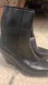 Chic black leather boots with a stylish wedge heel & metal tip. Slightly hits above ankle.