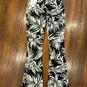 Elevate your wardrobe with these stylish black and white botanical palm trouser dress pants from Zara. Perfect for any occasion, whether it be a casual day out or a business meeting, these pants are made from a blend of polyester and elasthane, providing comfort and stretch. The flared leg style and slimming features make them a flattering choice for any body type.