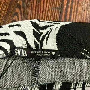Zara Black White Botanical Palm Leaf Trouser Flared Dress Pant Sz Small