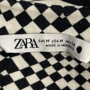 Zara Black White Checkered Plaid Long Sleeve Button Down Shirt Blouse Top Size M