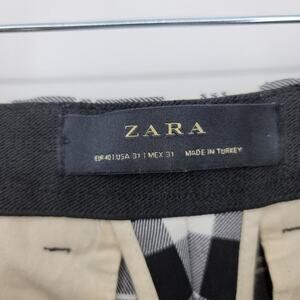 Zara Black White Checkered Plaid Pull On Straight Leg Pants Trousers Size 31