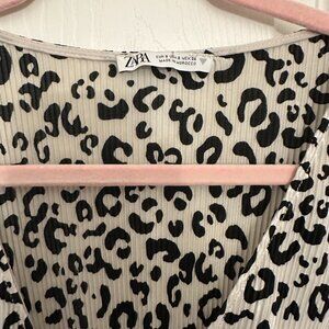 Zara Black & White Cheetah Print Blouse, US Size Small, Barely Worn