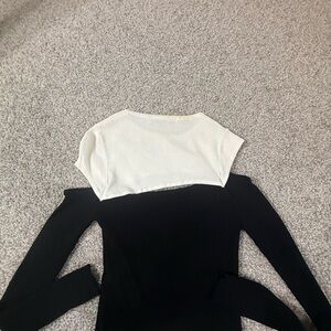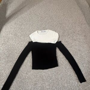 Zara Black White Colorblock Long Sleeve Top cut out M Ribbed Knit Tee Blockout