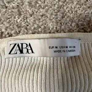 Chic and versatile, this Zara ribbed knit top features a bold black and white colorblock design with long sleeves and a fitted silhouette. Perfect for pairing with skirts, trousers, or denim for an elevated everyday look.