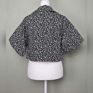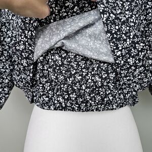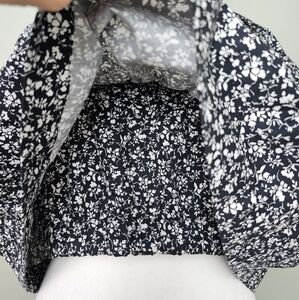 Zara Black White Floral Babydoll Crop Top MEDIUM
