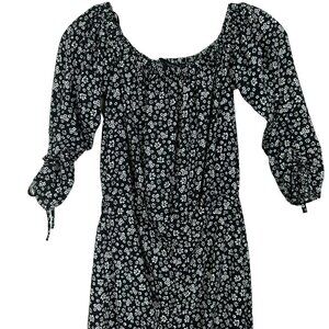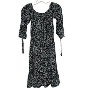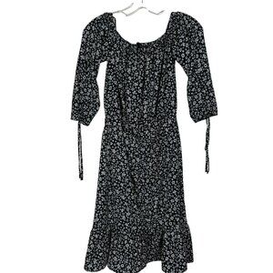 Zara Black White Floral Off Shoulder Midi Dress Ruffled With Rushing XS