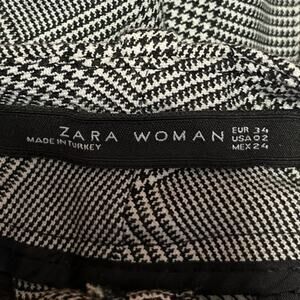 Zara Black White Gray Plaid Straight Leg Mid Rise Step Hem Crop Trousers Pants 2