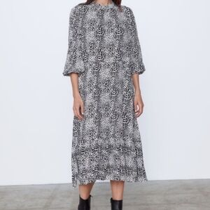 Item: Black and White Leopard Tiered Tent Midi Dress