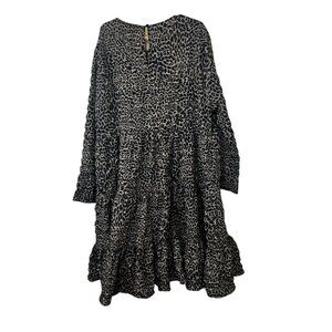 Zara Black & White Leopard Print Long-Sleeve Tiered Midi Dress size small