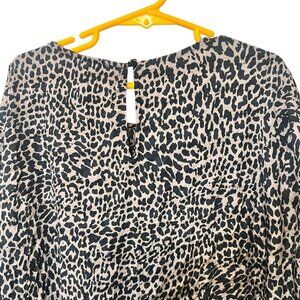 Zara Black & White Leopard Print Long-Sleeve Tiered Midi Dress size small
