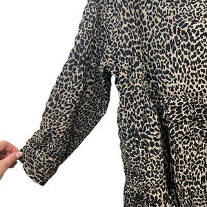 Zara Black & White Leopard Print Long-Sleeve Tiered Midi Dress size small
