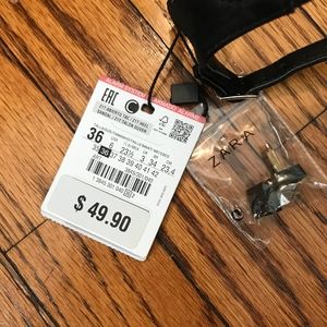 Black and white striped heeled sandals from ZARA. 4" heel with an open peep toe. VERY comfortable! Comes with a replaceable sole for each heel. Only tried them on - never before worn with tags still attached. Originally paid $50.00 Perfect for summer!!