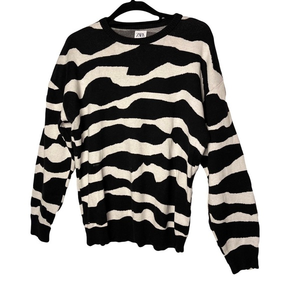 Zara | Black White Oversized Zebra Knit Long Sleeve Sweater, Large