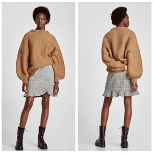 Zara black and white plaid mini skirt. High-waisted with side zipper closure and ruffled hem.