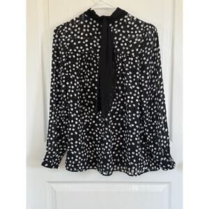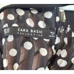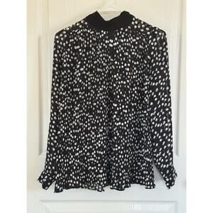 Zara Black & White Polka Dot High Neck Pleated Plisse Blouse Size XS