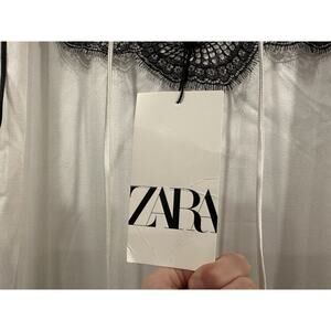 On sale is a Zara Black White Satin Effect Maxi Long Dress Medium M. It is new with tags. The straps are not adjustable.
