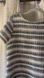 Chic mini dress with black and white stripes. Short sleeves. Fringed hem detail.