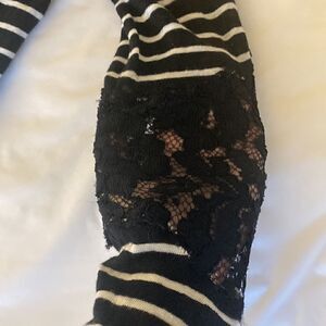 Zara Black & White Striped Long Sleeve Top with Lace Band on Sleeve. Size Small.
