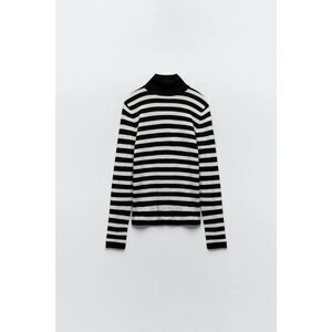Zara Black White Striped Mock Neck Long Sleeve Knit Pullover Sweater (NWT)