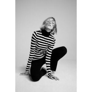 Zara Black White Striped Mock Neck Long Sleeve Knit Pullover Sweater