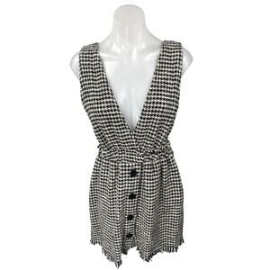 Zara Black White Tweed Button Front Sleeveless Pinafore Vest Mini Dress Size S