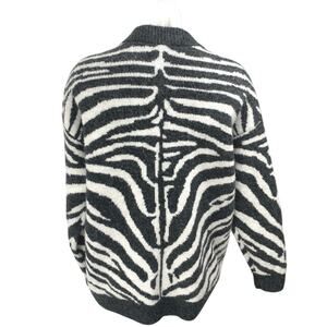 Zara Black White Wool Zebra Print Long Sleeve Button Up Cardigan Sweater Top S