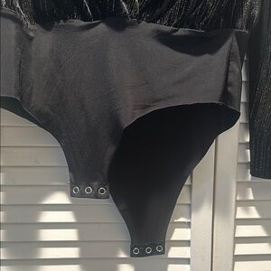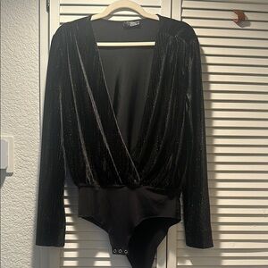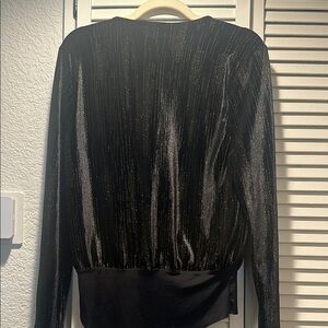 This elegant black bodysuit from Zara features a sophisticated wrap-style V-neckline and long sleeves, perfect for both casual and dressier occasions. The stretchy fabric offers a comfortable fit, while the snap closure ensures a sleek silhouette.