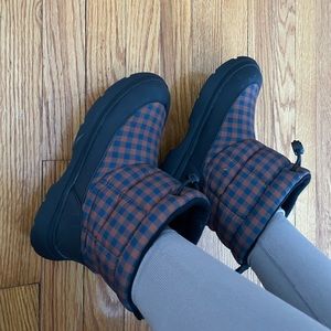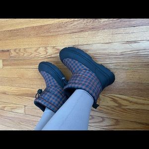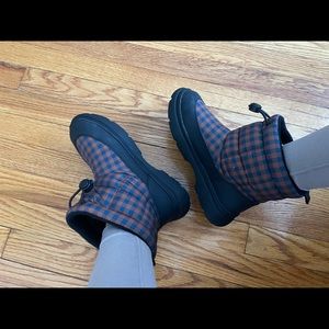 Stylish checkered design. Warm and comfortable for winter. Durable construction. Euro size 37/US size 6