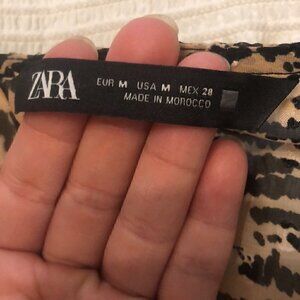Zara Black and Brown Printed Balloon Sleeve Crop Top Size Medium