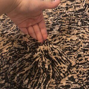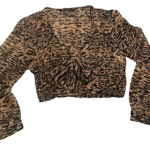 Zara Black and Brown Printed Balloon Sleeve Crop Top Size Medium. New without tags, never wore it. Top is a somewhat sheer fabric with balloon sleeves and a bow on the front and deep V neck. Very flattering with most of the bottom hem being stretchy elastic
