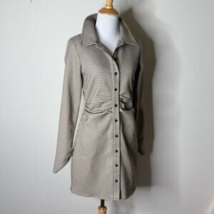 Zara Black and Creme Houndstooth Long Sleeve Mini Dress