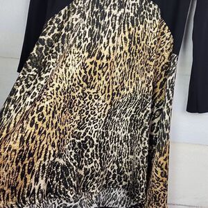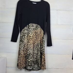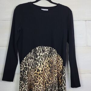 Stylish black dress with leopard print detail. Long sleeves. Perfect for a chic look.