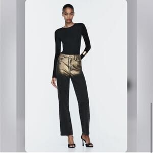 Zara Black and Metallic Gold HIGH WAIST Z1975 STRAIGHT LEG FOIL JEANS