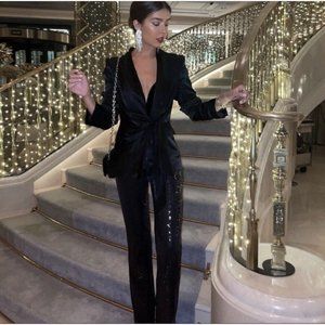 Dazzling wide leg pants with shimmering sequins. Ideal for a night out. Sophisticated style.