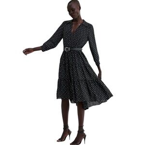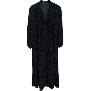 Zara Black and White Polka Dot Deep V-Neck Midi Dress Size XL
