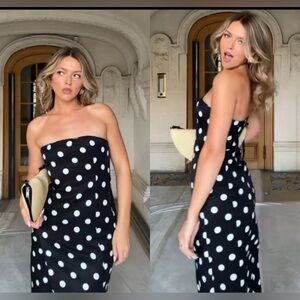 🔥🔥Zara Black and White Polka Dot Strapless Dress