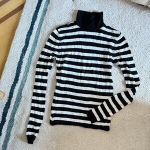 Zara Black and White Striped turtleneck Sweater - Layering Stripes in Monochrome