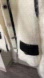 Chic Zara blazer with a textured white fabric. Black trim and accents add contrast. Perfect for a stylish look.