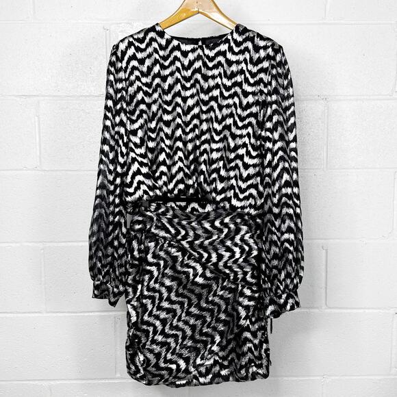 Stylish Zara dress with a bold zigzag pattern. Features long sleeves and a fitted silhouette. Perfect for any occasion.