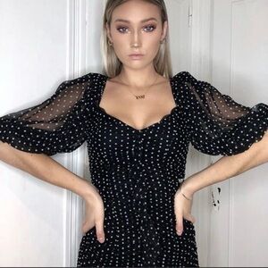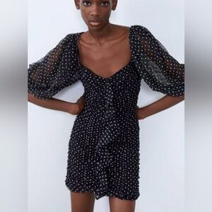 Zara Black and white polka dot Mini Dress sheer Sleeves Rouched Influencer fave